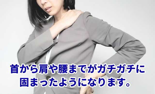 首から肩や腰までがガチガチに固まったようになります。